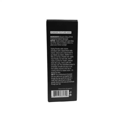 Bột tạo phồng Roug Texture Powder được làm chủ yếu từ các thành phần đất sét đã được tán mịn thành bột (Silica Silylate). Nhờ tính chất đặc trưng của các thành phần này mà sản phẩm có một chất bột màu trắng rất nhẹ, dễ bay khi rắc ra tay (do đó mình khuyên các bạn tốt hơn nên rắc trực tiếp lên tóc) và có một khả năng hút dầu cực mạnh. Khi xoa đều ra tóc, bột tạo phồng Roug Texture Powder cho các bạn cảm giác tóc sẽ khô dần có một chút rít nhẹ từ chân đến ngọn.